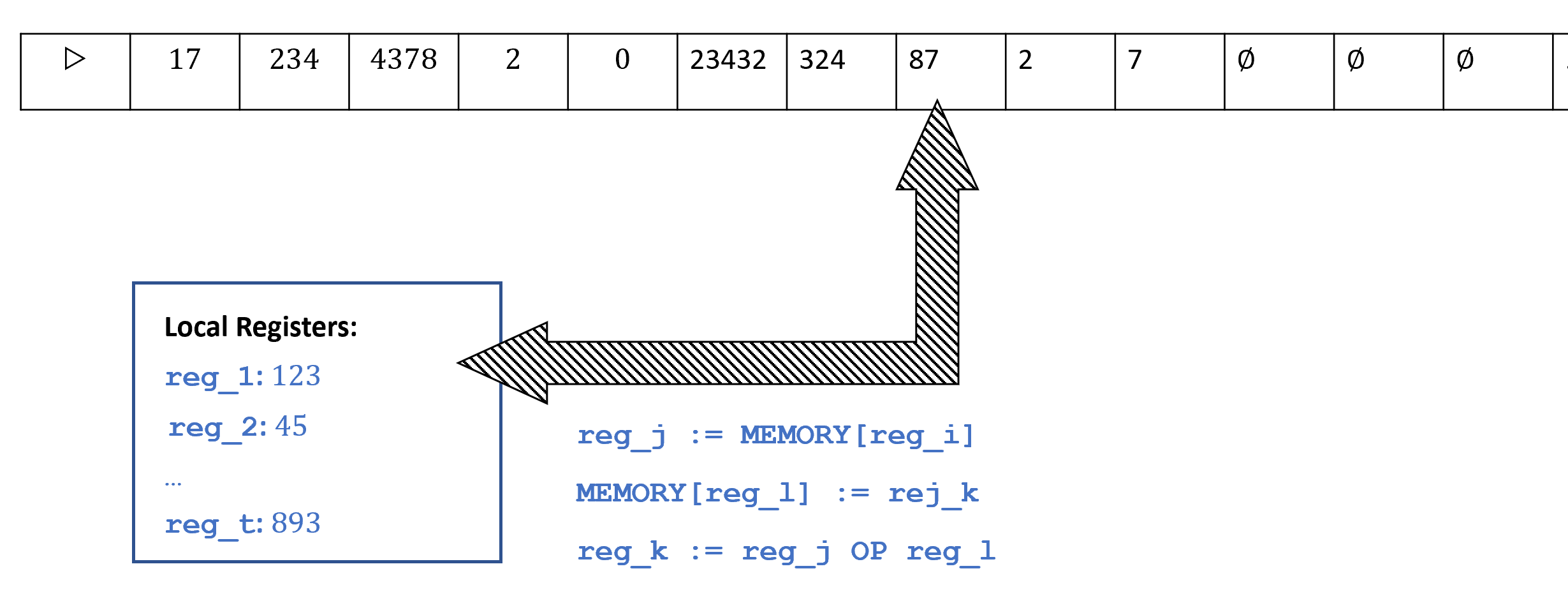 - 控制流: 与图灵机一样, 接下来执行什么指令的选择可以取决于RAM机的状态, 这由其寄存器的内容捕获.