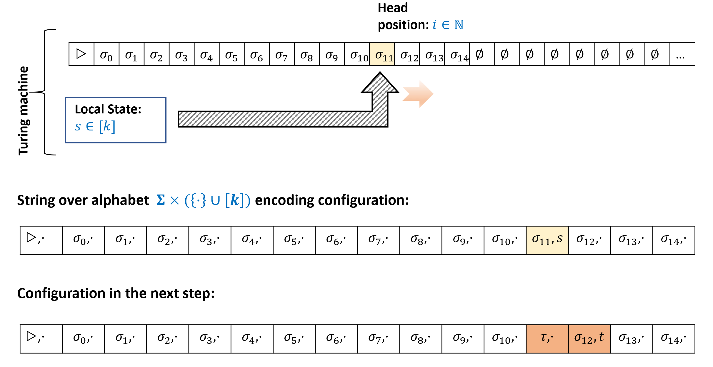 foo, 要么是形如Bar[<num>]的形式(其中<num>是某个数字), 并且它包含所有非零的变量值. 令为一个函数, 它将NAND-RAM程序在某一时刻的配置映射到下一时刻的配置. 证明可由图灵机计算(你不需要实现每一个算术操作: 实现加法和乘法就足够了). - 证明对于每个可由NAND-RAM程序计算的函数 也可由图灵机计算.